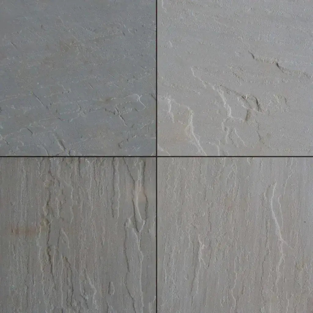 Kandla Grey Sandstone, also known as Bhilwara Grey Sandstone or Silver Sand Sandstone, is a robust Indian stone known for its strength and natural beauty. Composed of quartz grains cemented with silica and calcite, it is easily identified by its hard structure and stunning grey-blue tones. Featuring a slightly riven surface and hand-dressed corners, it delivers a classic yet modern aesthetic.
